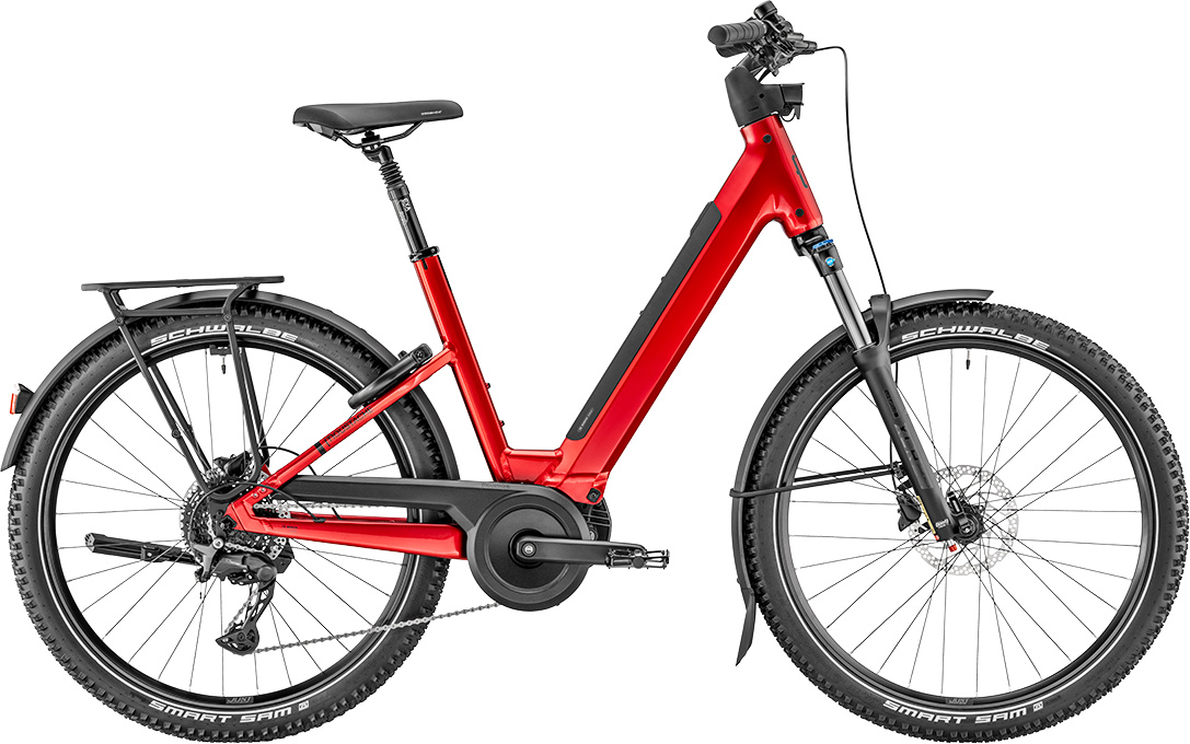 MOUSTACHE Samedi 27 Xroad 4 OPEN 600 je spolehlivé a všestranné trekingové elektrokolo vybavené nejnovějším motorem Bosch Performance Line PX 5. generace, který poskytuje točivý moment až 90 Nm a hladký, přirozený projev při šlapání. Baterie s kapacitou 600 Wh nabízí dostatek energie pro každodenní jízdy i delší výlety. Otevřený rám usnadňuje nasedání a hodí se pro široké spektrum jezdců. Komfort zajišťuje odpružená vidlice SR Suntour se zdvihem 120 mm a odpružená sedlovka. Díky výbavě jako jsou blatníky, zadní nosič kompatibilní s MIK HD, zámek AXA a připravenost pro Moustache Protect Option se kolo skvěle hodí do města i mimo něj.